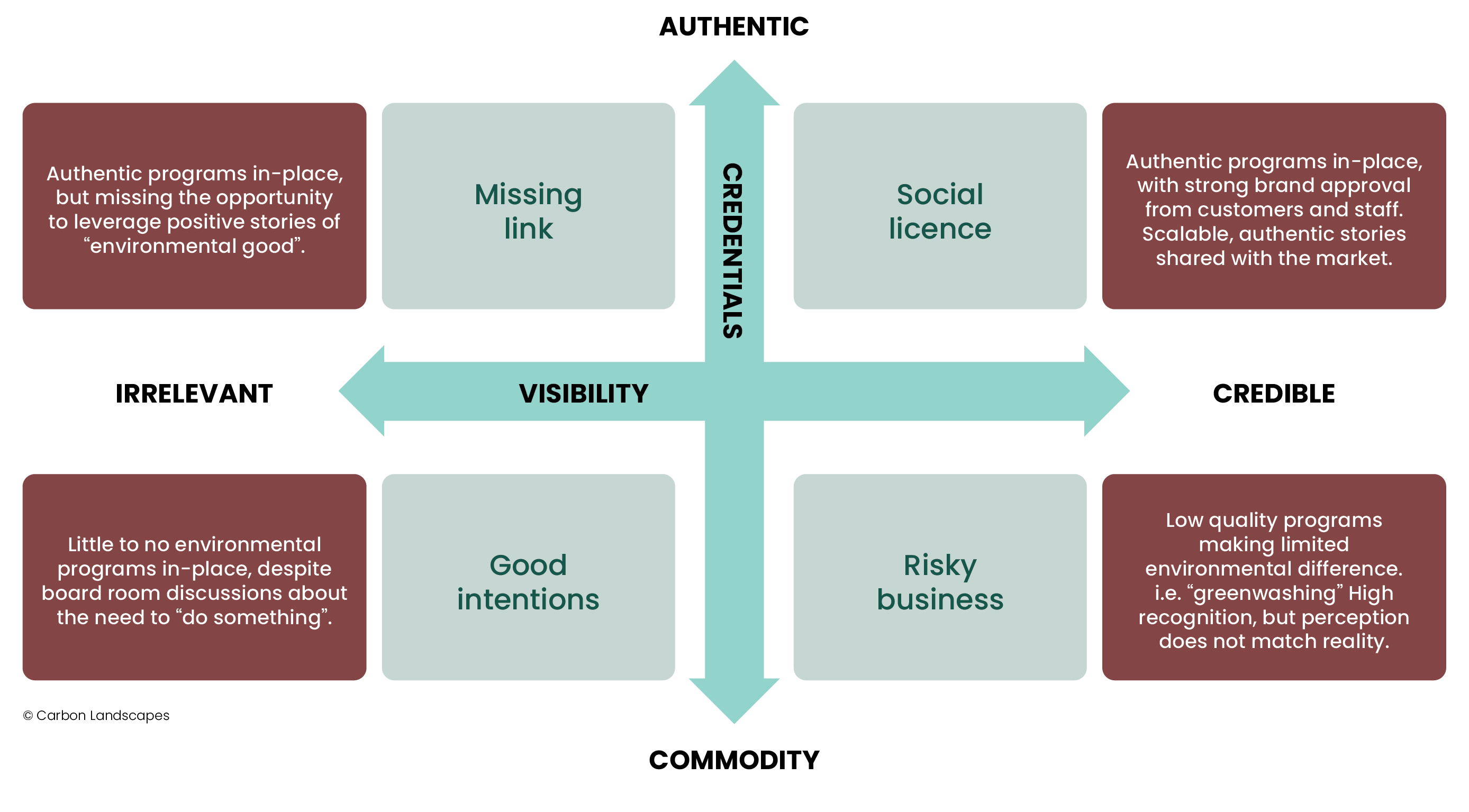 Two factors determine how well a brand can authentically give back to the environment, and gain support from consumers and staff - credentials and visibility.